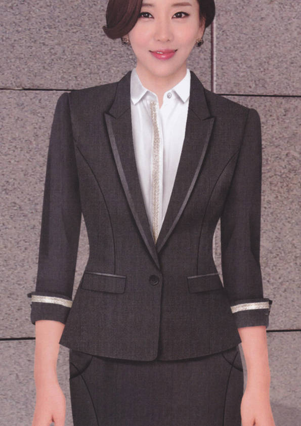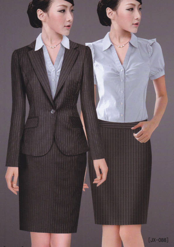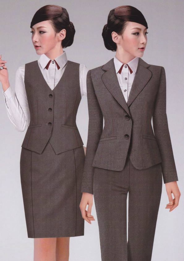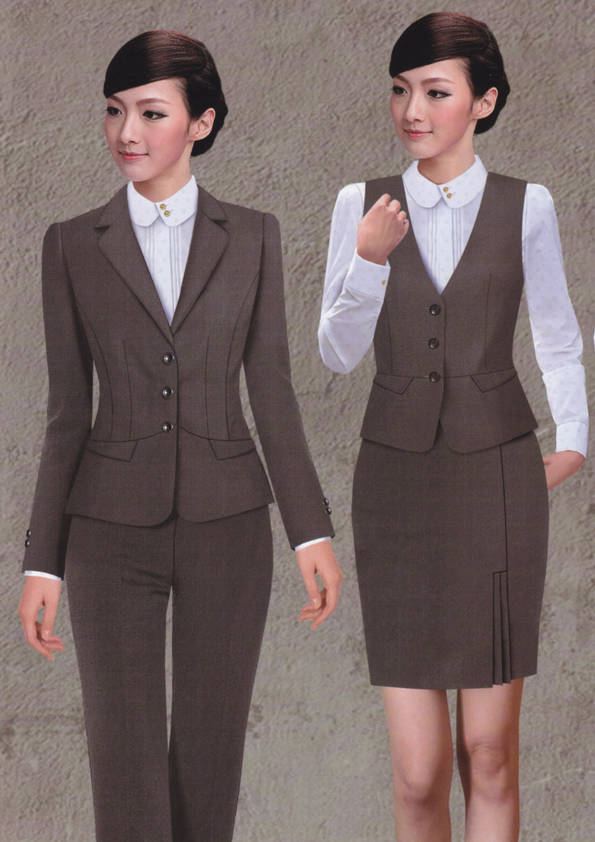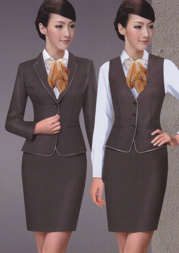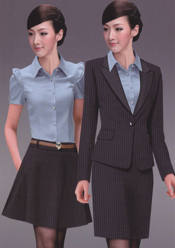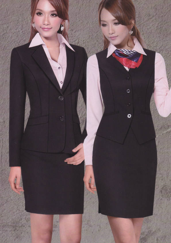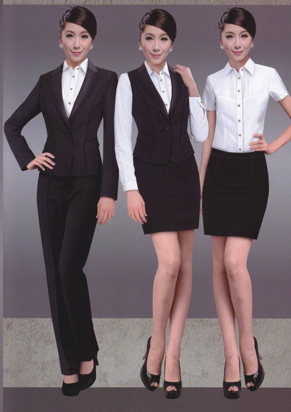 女式正裝是以西服套裝為準,以西褲、裙或西服套裙等在正式,嚴肅場所的著裝。在這三種類型中,每一種都要考慮其顏色和面料。而西服套裙是女性的標準職業著裝,可塑造出強有力的形象。女性的職業服裝比男人更具個性,最佳顏色是黑色、藏青色、灰褐色、灰色和暗紅色。精致的方格、印花和條紋也可以用于正式場合。