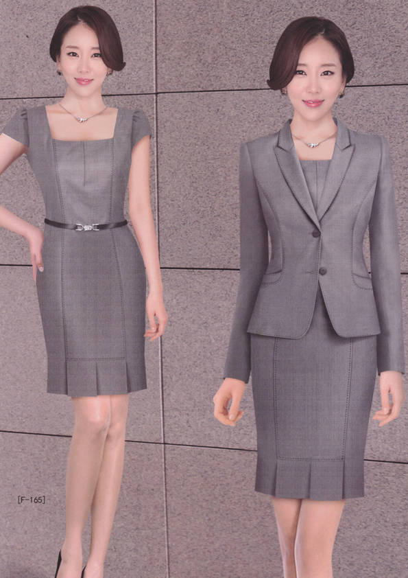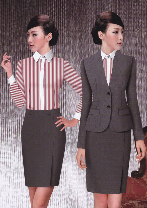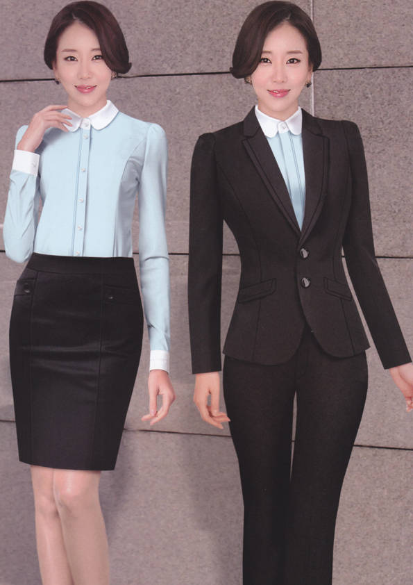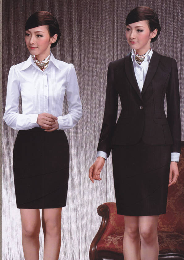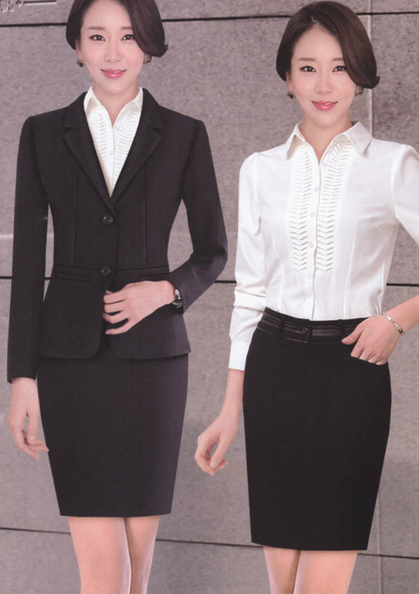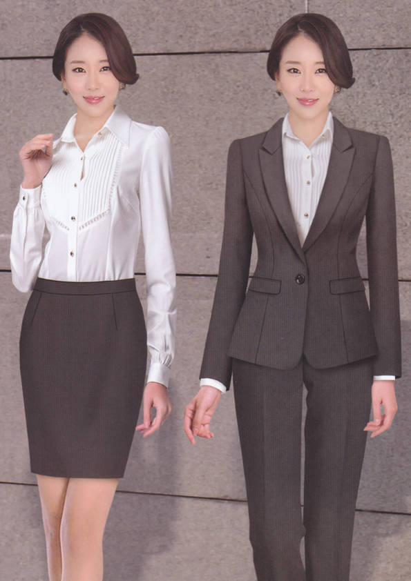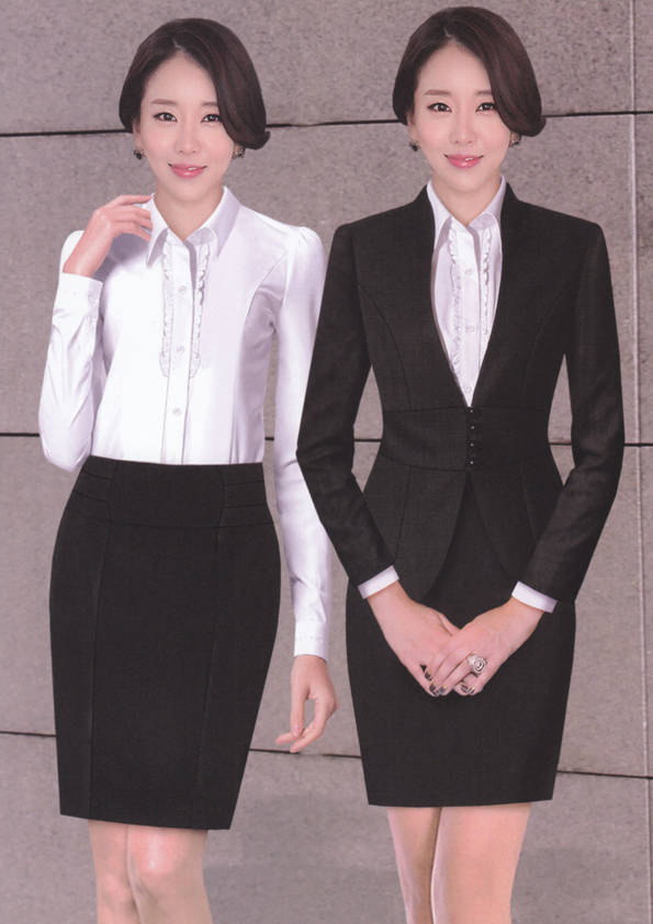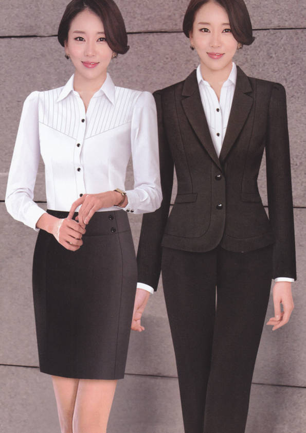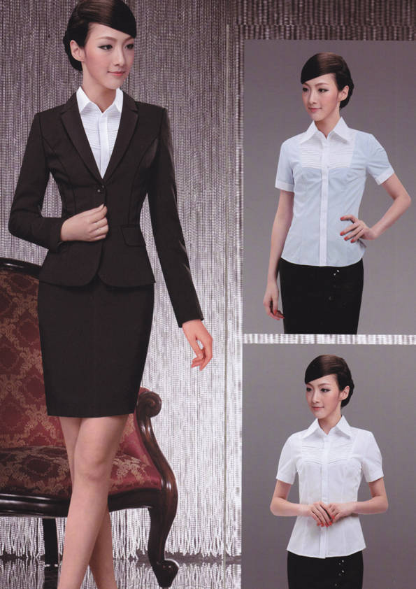 女式正裝是以西服套裝為準,以西褲、裙或西服套裙等在正式,嚴肅場所的著裝。在這三種類型中,每一種都要考慮其顏色和面料。而西服套裙是女性的標準職業著裝,可塑造出強有力的形象。女性的職業服裝比男人更具個性,最佳顏色是黑色、藏青色、灰褐色、灰色和暗紅色。精致的方格、印花和條紋也可以用于正式場合。