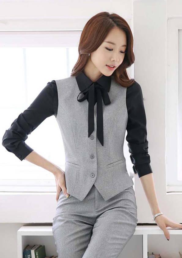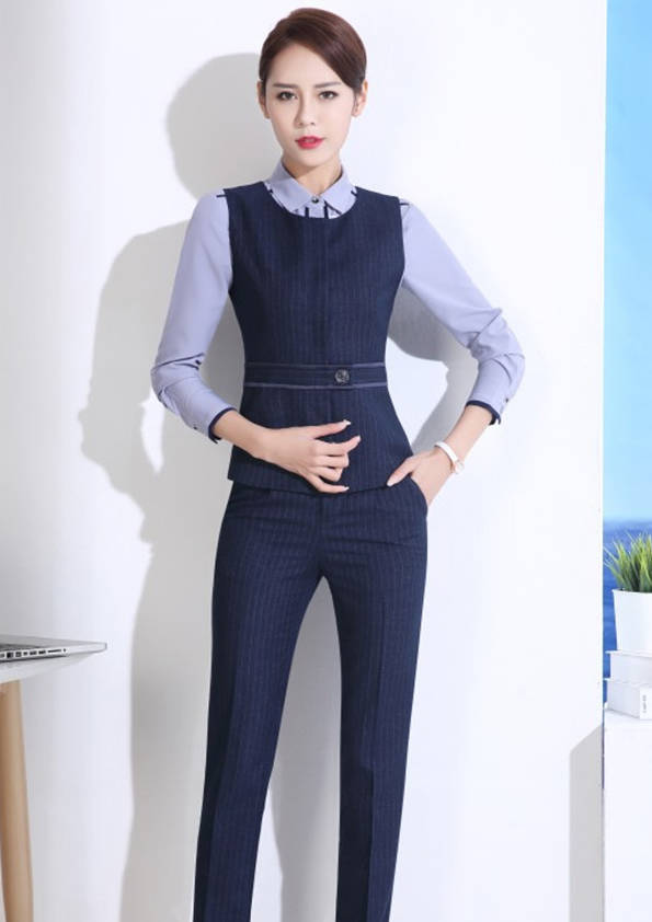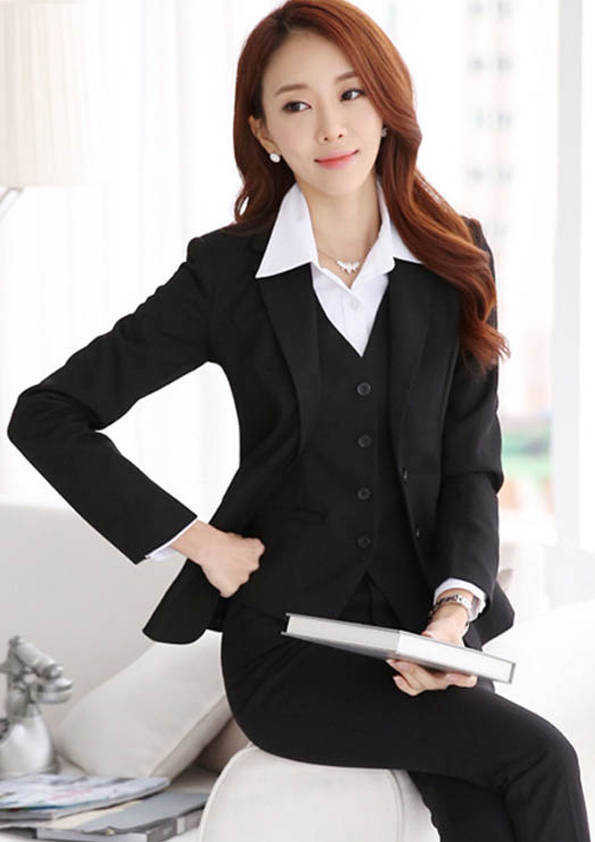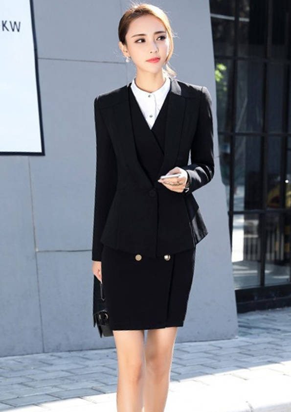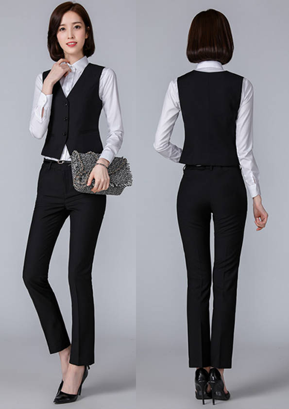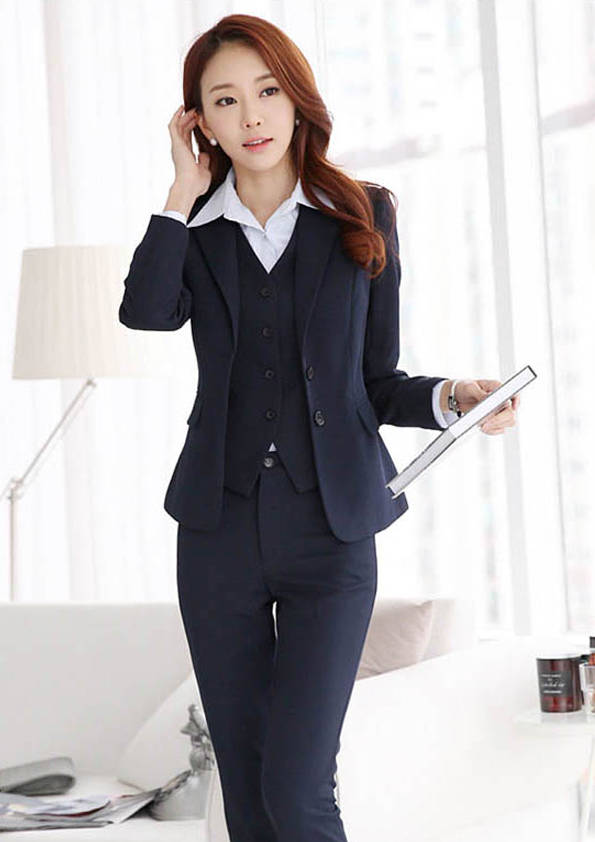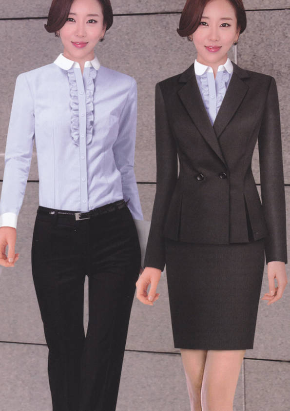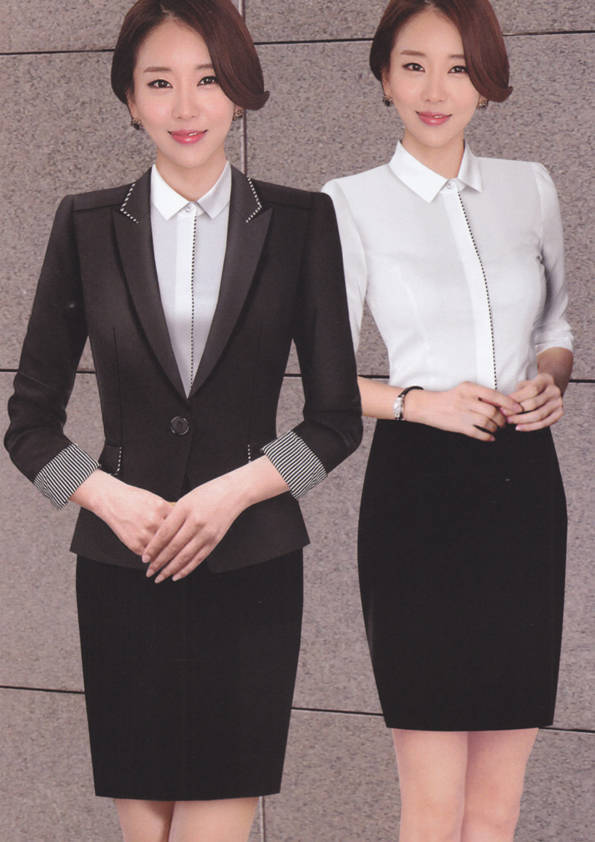 女式正裝是以西服套裝為準,以西褲、裙或西服套裙等在正式,嚴肅場所的著裝。在這三種類型中,每一種都要考慮其顏色和面料。而西服套裙是女性的標準職業著裝,可塑造出強有力的形象。女性的職業服裝比男人更具個性,最佳顏色是黑色、藏青色、灰褐色、灰色和暗紅色。精致的方格、印花和條紋也可以用于正式場合。