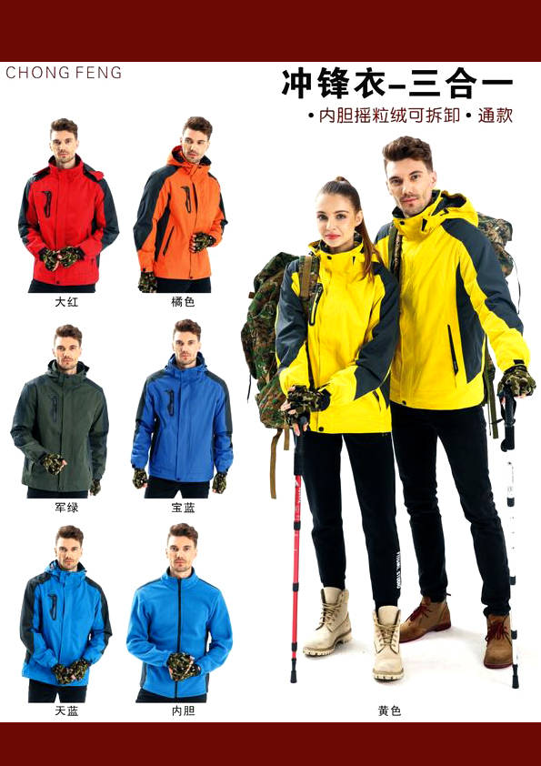 沖鋒衣,外文名Jackets,又名Outdoor Jackets,音譯為夾克,戶外運動必備裝備之一。沖鋒衣之所以能成為所有戶外愛好者的首選外衣,是由其全天候的功能決定的。沖鋒衣的 英語為“Jackets”或者“Outdoor Jackets”,直譯過來就是“夾克”,沖鋒衣并不神秘,就是夾克衫,但由于這種功能性服飾從國外傳到中國時,國人為了和普通衣服區(qū)別開來,就從其“意譯”上入手,叫做“沖鋒衣”。